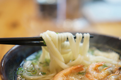 スッキリとした色合いのダシになじんだ柔らかい食感の麺とトッピングが優しいハーモニーを楽しませてくれるでしょう。